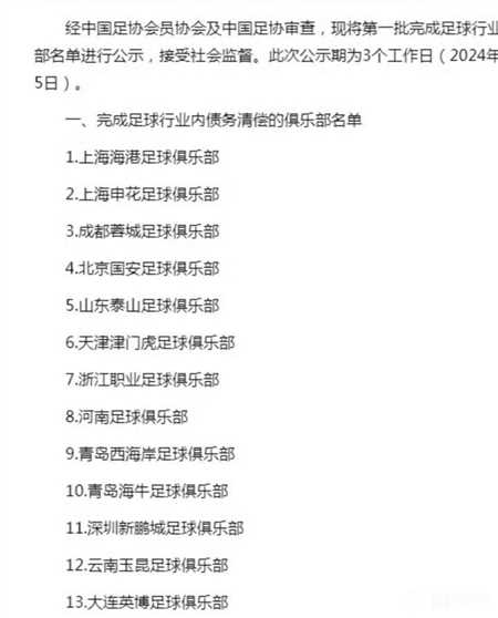 41支球队完成清欠,有望通过联赛准入。 中超三队:长春亚泰、武汉三镇、沧州雄狮缺席名单。 中甲六队:梅州客家、广州队、广西平果哈嘹、南京城市、延边龙鼎、黑龙江冰城榜上无名。感觉中甲的问题要更大一些。