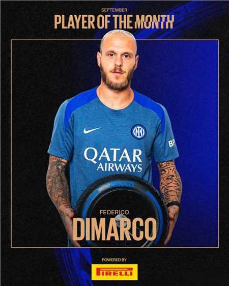 官方消息,迪马尔科当选国米9月最佳球员。